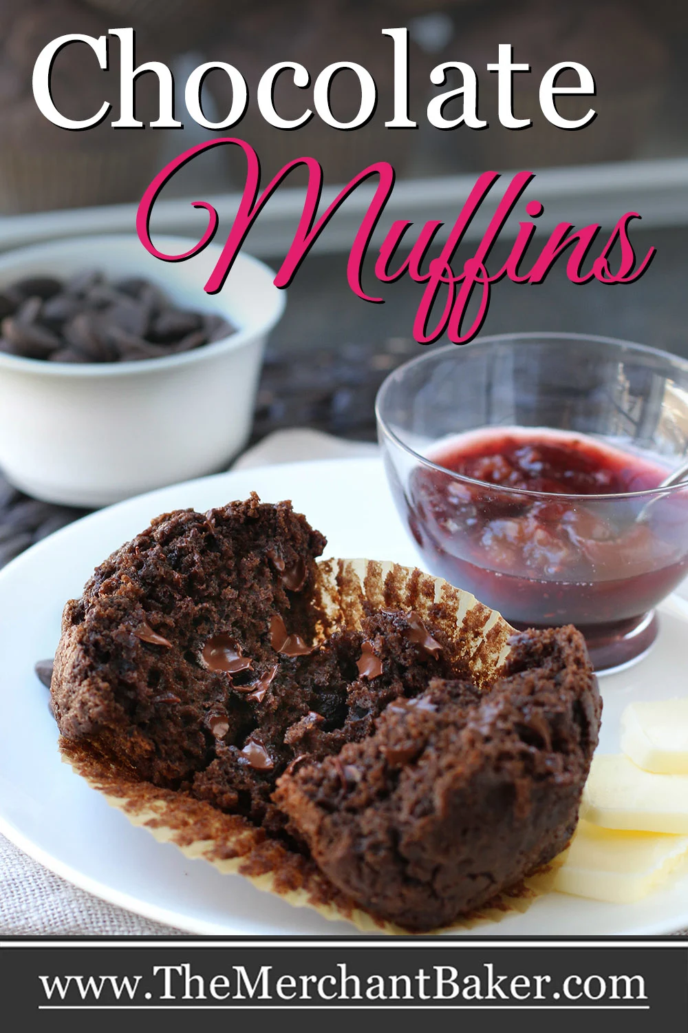- Semi-sweet chocolate chips – I love mini chips for muffins but I thought they’d get lost in the chocolate batter. So, I opted for regular sized chips. Use milk chocolate if you want an even sweeter muffin.